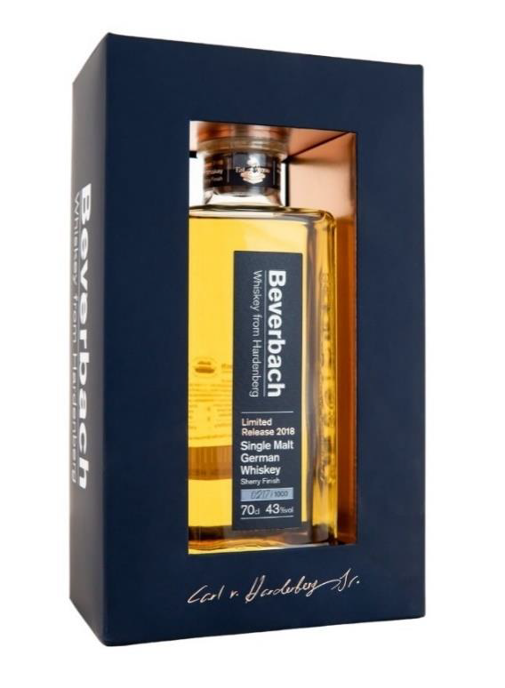 Beverbach Single Malt Whisky z niemieckiej destylarni Hardenberg jest wytwarzana z połączenia słodowanego jęczmienia i słodowanej pszenicy, w przeciwieństwie do whisky single malt ze Szkocji. Początkowo leżakuje w beczkach po Burbonie pierwszego napełnienia, a następnie trafia do beczek, w których wcześniej znajdowała się brandy. Pozwala to nabrać aromatów owocowych i lekko pikantnych.