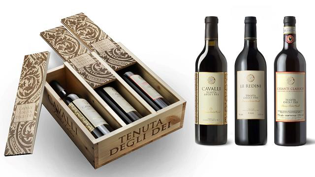 Niezwykły zestaw 3 win w drewnianej skrzynce, z kolekcji Rodziny Cavalli, w skład której wchodzą:
