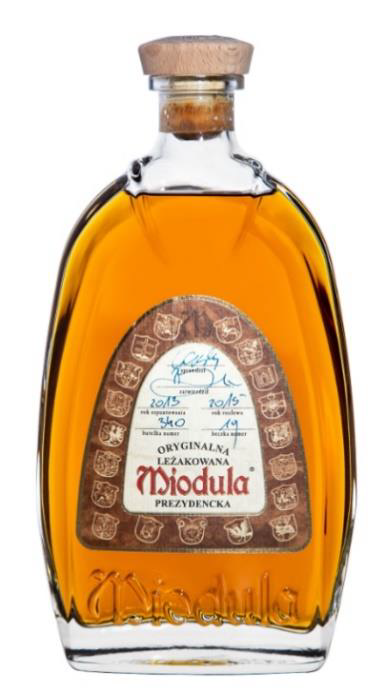 Oryginalna Leżakowana Miodula Prezydencka szpuntowana w 2013 roku a rozlana w 2015 roku, posiada głęboką bursztynową barwę. Podczas degustacji uwalniają się zapachy wanilii, migdałów, miodu oraz dębu. Na języku Miodula uwalnia nuty mocno migdałowe. Finisz jest długi, delikatny i z dużą pełnią smaku. Aftertaste jest średni do długiego.