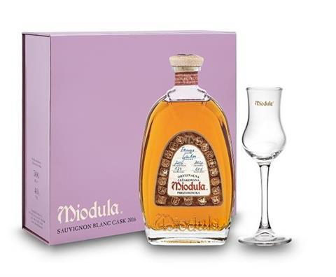Oryginalna Leżakowana Miodula Prezydencka Sauvignon Blanc Cask to alkohol, który otrzymujemy w małym pudełku o bardzo minimalistycznym wyglądzie w kolorze różu. Trunek ten jest wyjątkowo zbalansowany i dojrzały. W nosie można wyczuć słodki zapach karmelu i toffi z aromatami melona, brzoskwiń oraz bananów. Podczas smakowania tej miodowej wódki uwalniają się słodkie nuty miodu, toffi oraz sałatki owocowej. Finisz jest pełny, długi i przyjemny, a następujący po nim aftertaste będzie nam towarzyszył długi czas. Oryginalna Leżakowana Miodula Prezydencka Rose Gold Sauvignon Blanc, rocznik 2016 to limitowana edycja Mioduli Prezydenckiej dojrzewającej w beczkach wykonanych z francuskiego dębu, w których dojrzewało wino Sauvignon Blanc.