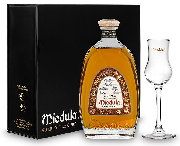 Miodula Prezydencka to wódka leżakująca w dębowych beczkach, powstałych ze starannie wyselekcjonowanych polskich dębów. Każda oryginalna beczka poddawana jest specjalnej obróbce polegającej na dokładnym jej opaleniu. Dzięki temu ogrom związków aromatycznych zawartych w dębinie migruje do alkoholu nadając mu niepowtarzalny i tradycyjny smak. Piękna bursztynowa barwa trunku kryje w sobie kompozycję naturalnego miodu spadziowego z subtelnymi nutami wanilii. Po otwarciu wita nas zapach słodkawy, głównie miodowy, owocowy oraz kwiatowy. Podczas smakowania wyczuwalne są łagodna czekolada, jaki i toffi oraz nuty kremowe. Każda oryginalna butelka opisywana jest ręcznie i posiada swój indywidualny numer. Prezentowana Miodula zamknięta została w bardzo eleganckiej lakierowanej czarnej skrzynce wyściełanej atłasem.