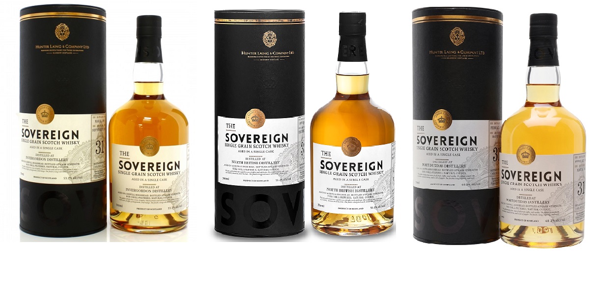 Whisky zbożowe Hunter Laing z serii Sovereign single cask są butelkowane z mocą beczki i bez filtracji schładzającej lub sztucznego barwienia. Każda z tych rzadkich butelek Sovereign jest zarówno intensywna, jak i niecodzienna.