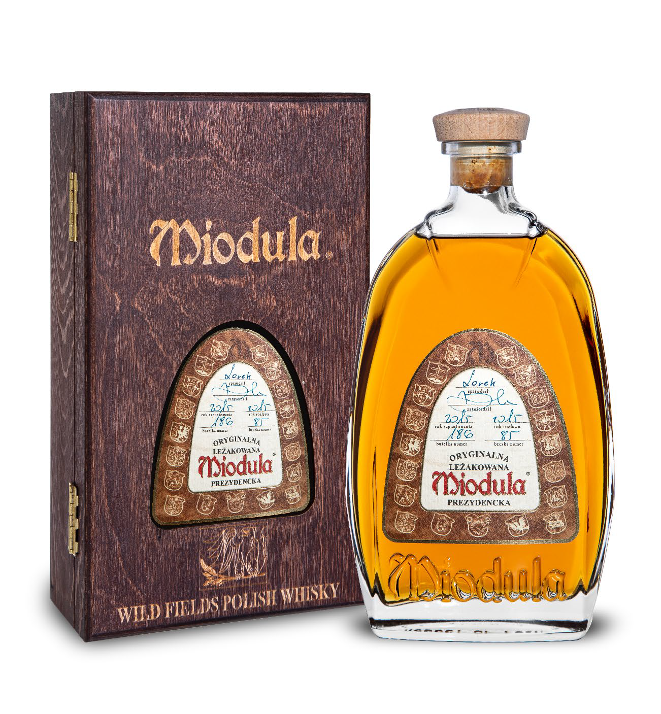 Oryginalna Leżakowana Miodula Prezydencka Wild Fields Single Grain Polish Whisky, która leżakowała w beczce po whisky Wild Fields Single Grain Polish Whisky posiada mocno bursztynową barwę. W nosie pojawiają się aromaty słodyczy, toffi, cukierków oraz nuty maślane. Podczas degustacji pojawia się duża, złożona pełnia smaku z subtelną nutą “Wild Fields Single Grain Polish Whisky”. Finisz jest bardzo przyjemny, a następujący po nim aftertaste długi, utrzymujący się.