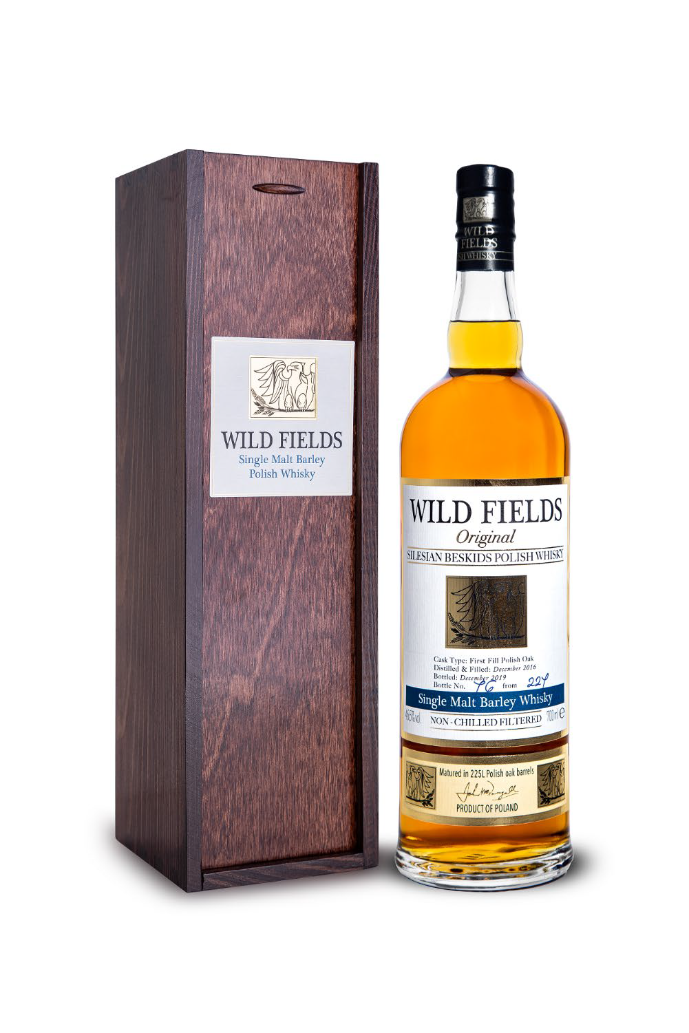 Wild Fields Single Malt Barley Polish Whisky wytworzona jest w tradycyjny sposób. Nie jest filtrowana na zimno, dojrzewa w polskich dębowych beczkach, wyprodukowana została w jednej partii, w jednej destylarni, a głównym surowcem używanym przy produkcji jest tradycyjna odmiana polskiego jęczmienia. Jest to młoda whisky co widać po złocistym kolorze. Mocno wyczuwalna jest ziołowo-miętowa, a czasem i owocowa woń nadając jej swoiście świeżego charakteru. Smak tego trunku jest bardzo złożony, zawiera w sobie nuty korzenne, oleiste oraz delikatnie dymne. Całość jest mocno rozgrzewająca co wyczuwalne jest jeszcze długo po zakończeniu smakowania. Whisky została rozlana na początku 2020 roku w ilości 227 butelek.