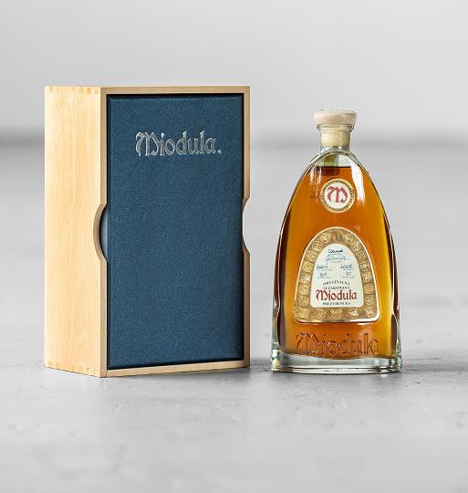 Najstarsza Miodula, została zaszpuntowana na początku 2004 roku, a rozlana do butelek w roku 2008. Jej niepowtarzalny kolor i aromat gwarantują dębowe beczki w których dojrzewa.