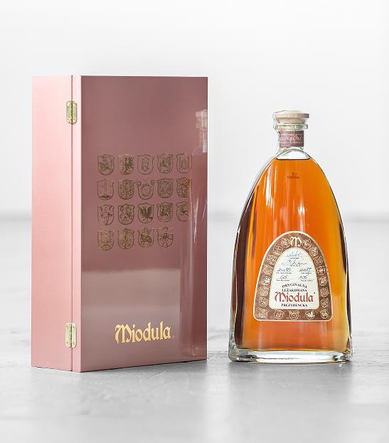 Oryginalna Leżakowana Miodula Prezydencka 1,5L 40% Box Rose Gold Sauvignon Blanc, rocznik 2015 to limitowana edycja Mioduli Prezydenckiej dojrzewającej w beczkach wykonanych z francuskiego dębu, w których dojrzewało wino Sauvignon Blanc.